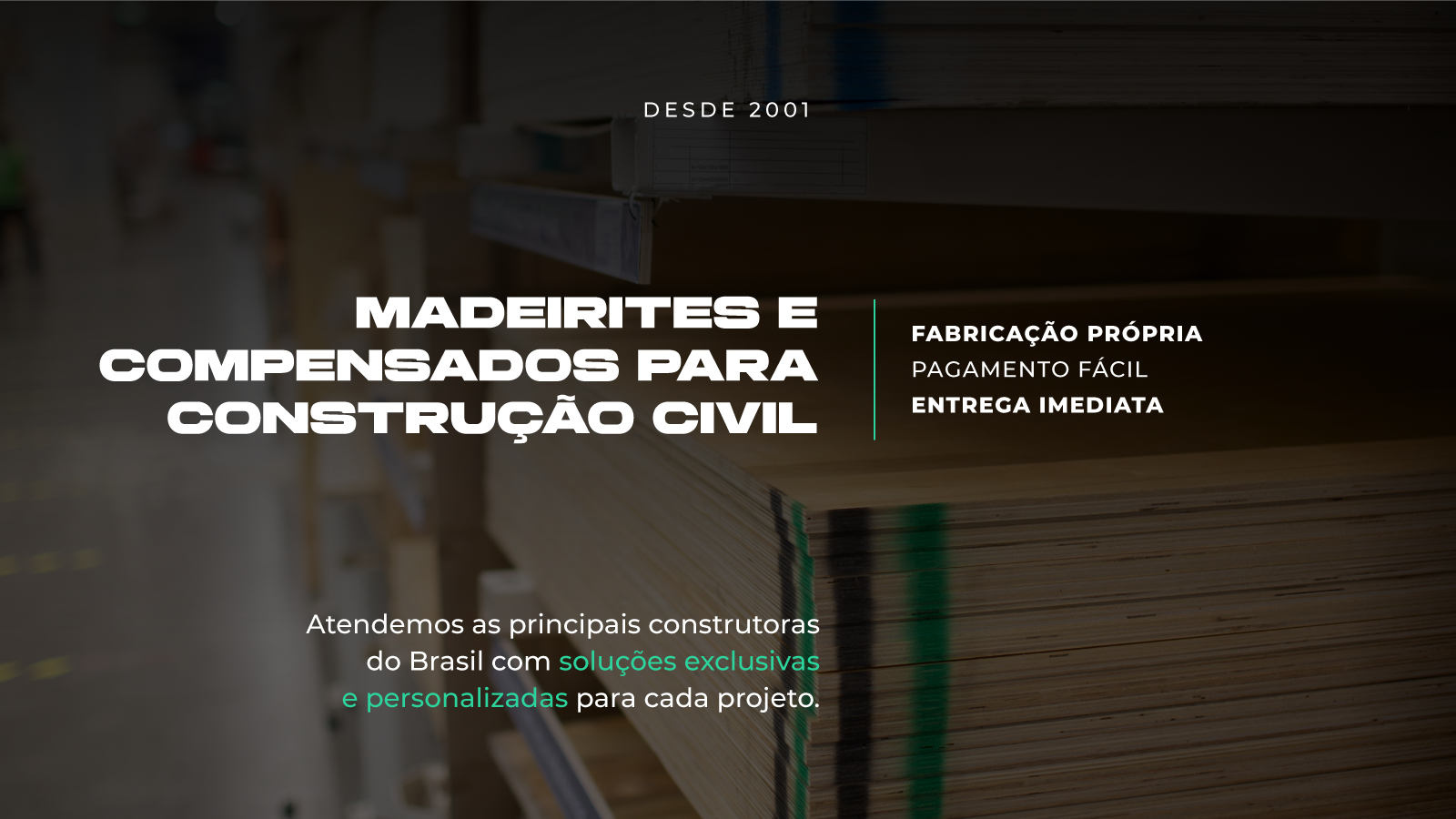 Contamos com diversas fábricas que produzem com exclusividade o que há de melhor no mercado em relação à madeirites e compensados, atendendo de imediato as mais conceituadas construtoras do Brasil.